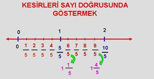 Bileşik kesir, payı paydasından büyük olan kesirlerdir ve sayı doğrusunda gösterilebilmesi için önce tam sayılı kesre çevrilir. Bunun için pay, paydaya bölünür; elde edilen bölüm tam kısmı, kalan ise kesrin payını oluşturur. Daha sonra sayı doğrusunda tam kısım kadar ilerlenir ve bu noktadan sonra bir tam aralık, kesrin paydasına göre eşit parçalara ayrılır. Pay kadar parça ilerlenerek bileşik kesrin bulunduğu nokta işaretlenir. Örneğin 7/3 bileşik kesri 2 tam 1/3 şeklinde yazılır; sayı doğrusunda önce 2’ye gelinir, ardından 2 ile 3 arasındaki aralık üç eş parçaya bölünür ve bir parça ilerlenerek kesrin yeri gösterilir. Bu şekilde bileşik kesirler sayı doğrusunda doğru ve anlaşılır biçimde gösterilebilir.